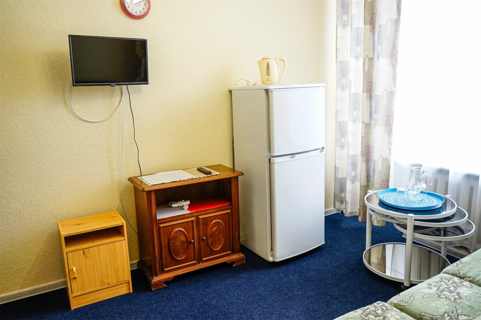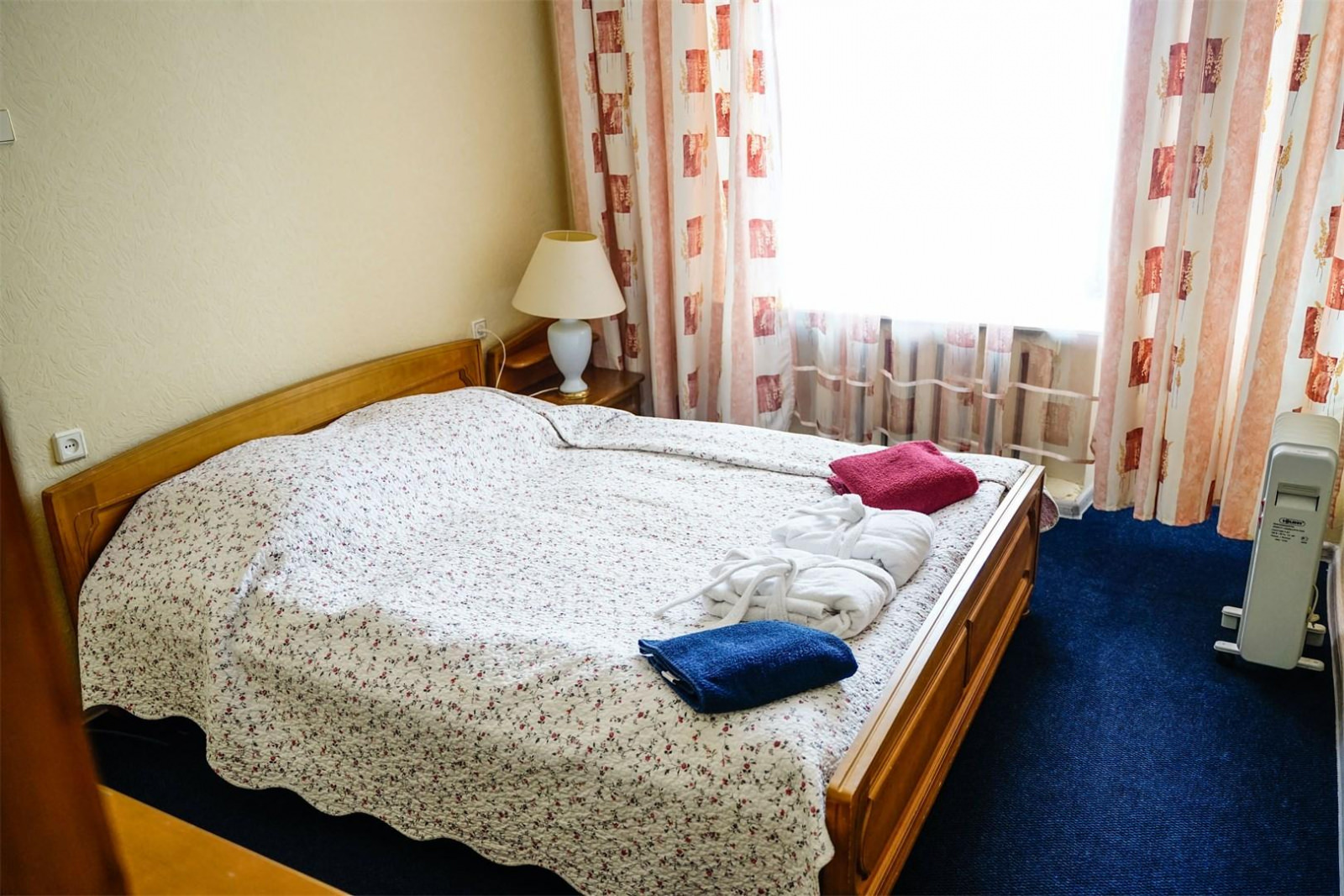 Классический двухкомнатный номер с оптимальным набором удобств, одной двухспальной кроватью и раскладным диваном. В номере есть телевизор, холодильник, совмещенный сан. узел, ванна, шкаф для хранения ваших вещей, комод, столовые приборы, электрический чайник.